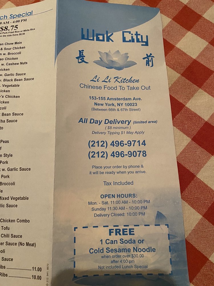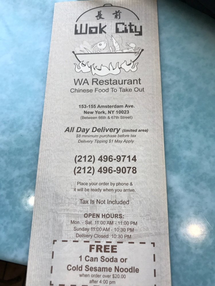 Wok City, situated in New York City, offers a diverse Chinese menu with a focus on quick service and large portions. Customer reviews highlight the efficiency of delivery and a variety of vegetarian options available. The establishment leans towards take-out, with limited seating and cash-only payments. The menu features popular dishes like Sesame Chicken, Chicken w/ Broccoli, and a well-praised Fried Chicken Wings with Fried Rice. The food is described as good but not extraordinary, with some items being a bit greasy. Prices are reasonable, and orders over $30 come with a free can of soda. Overall, Wok City provides a solid and affordable Chinese take-out experience, perfect for a quick and satisfying meal.